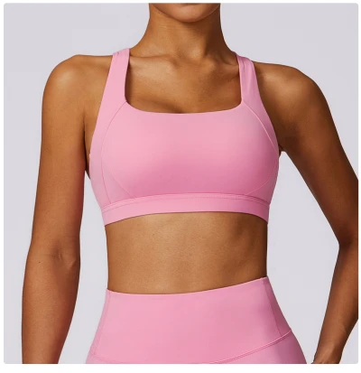 Custom sports bra backless| 2024 New Style Spandex Clothing Blank Pink Sports Bra Quick Dry